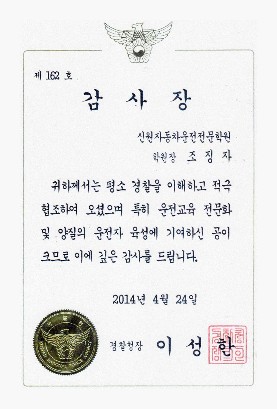 | 2014. 4. 24. | 경찰청장 감사장 수상 |